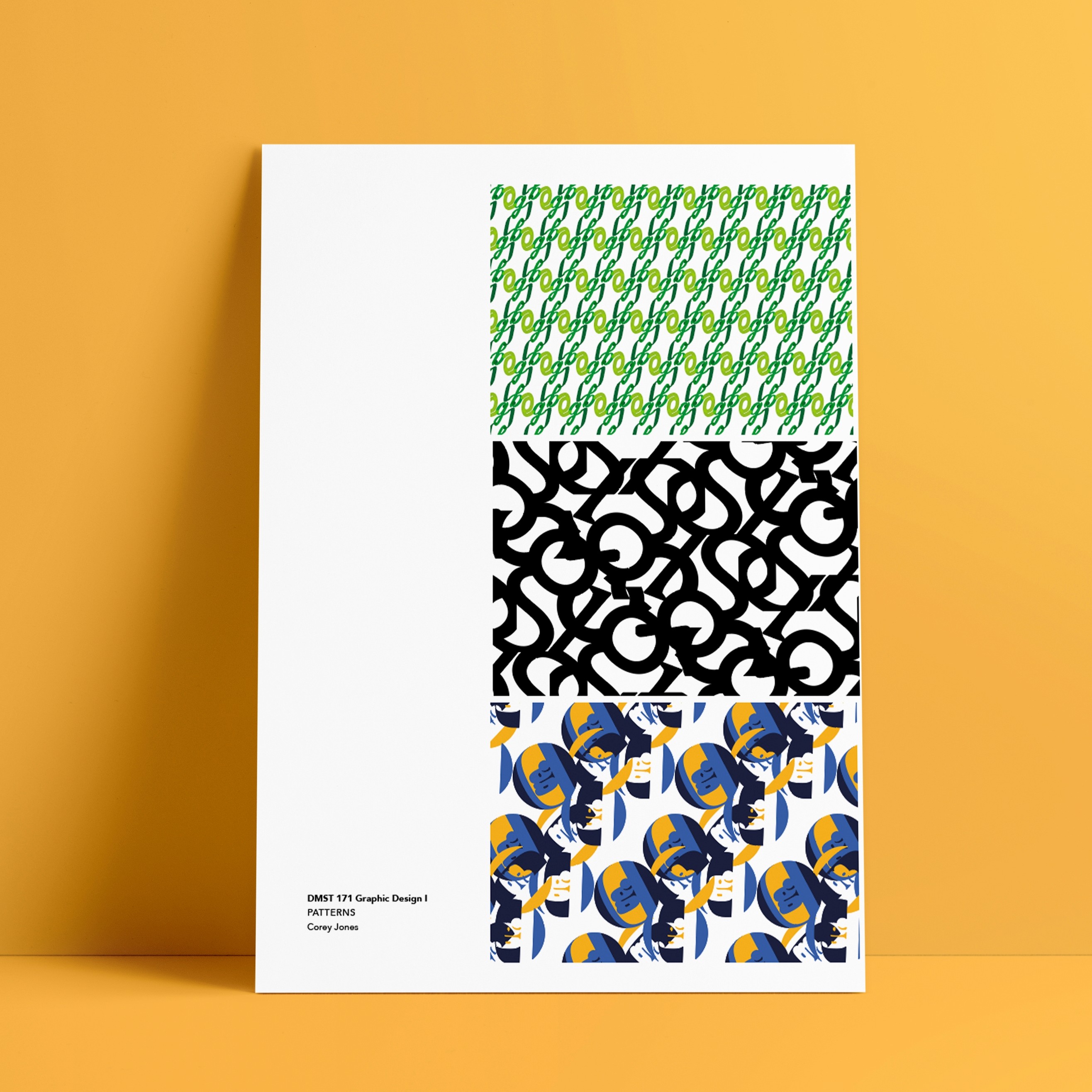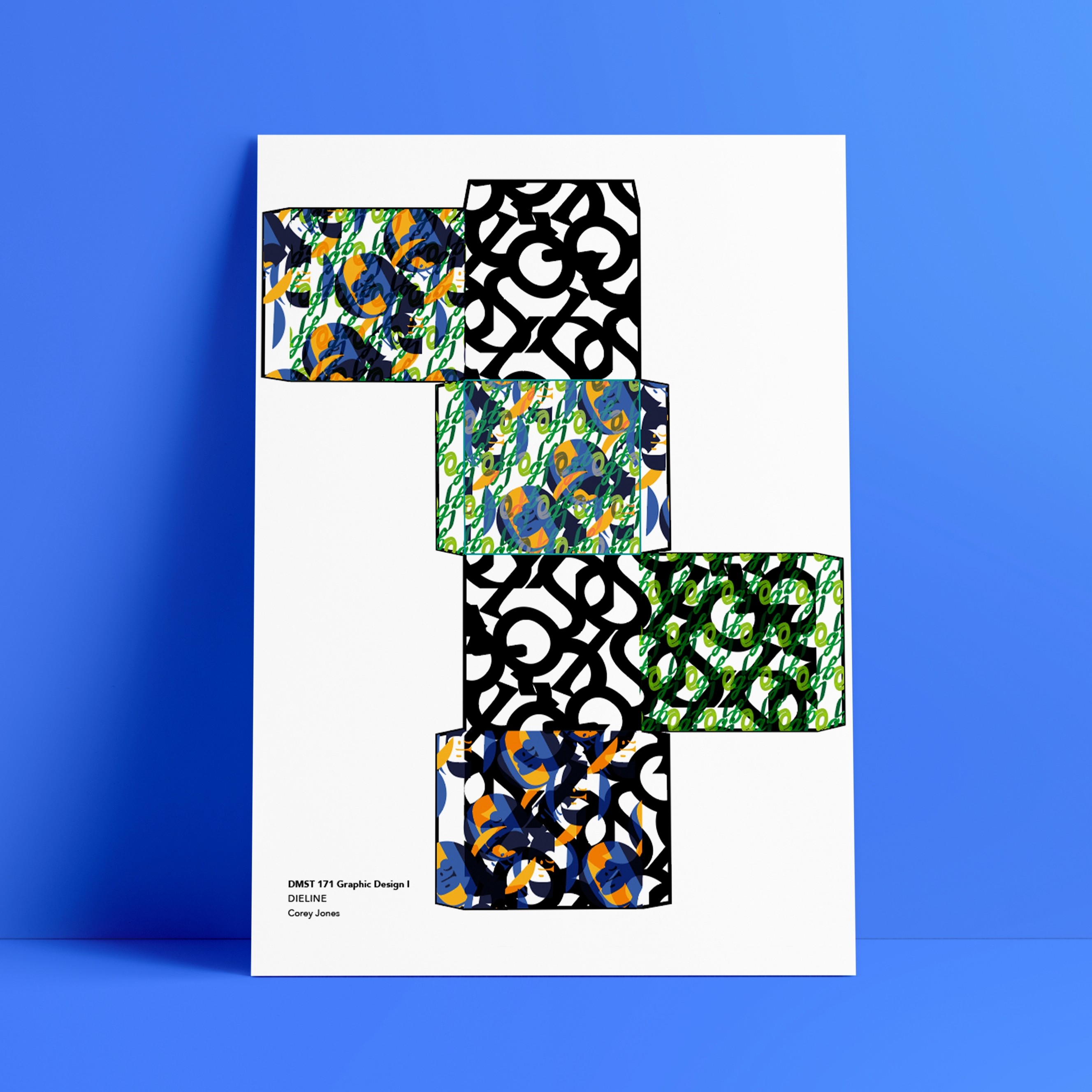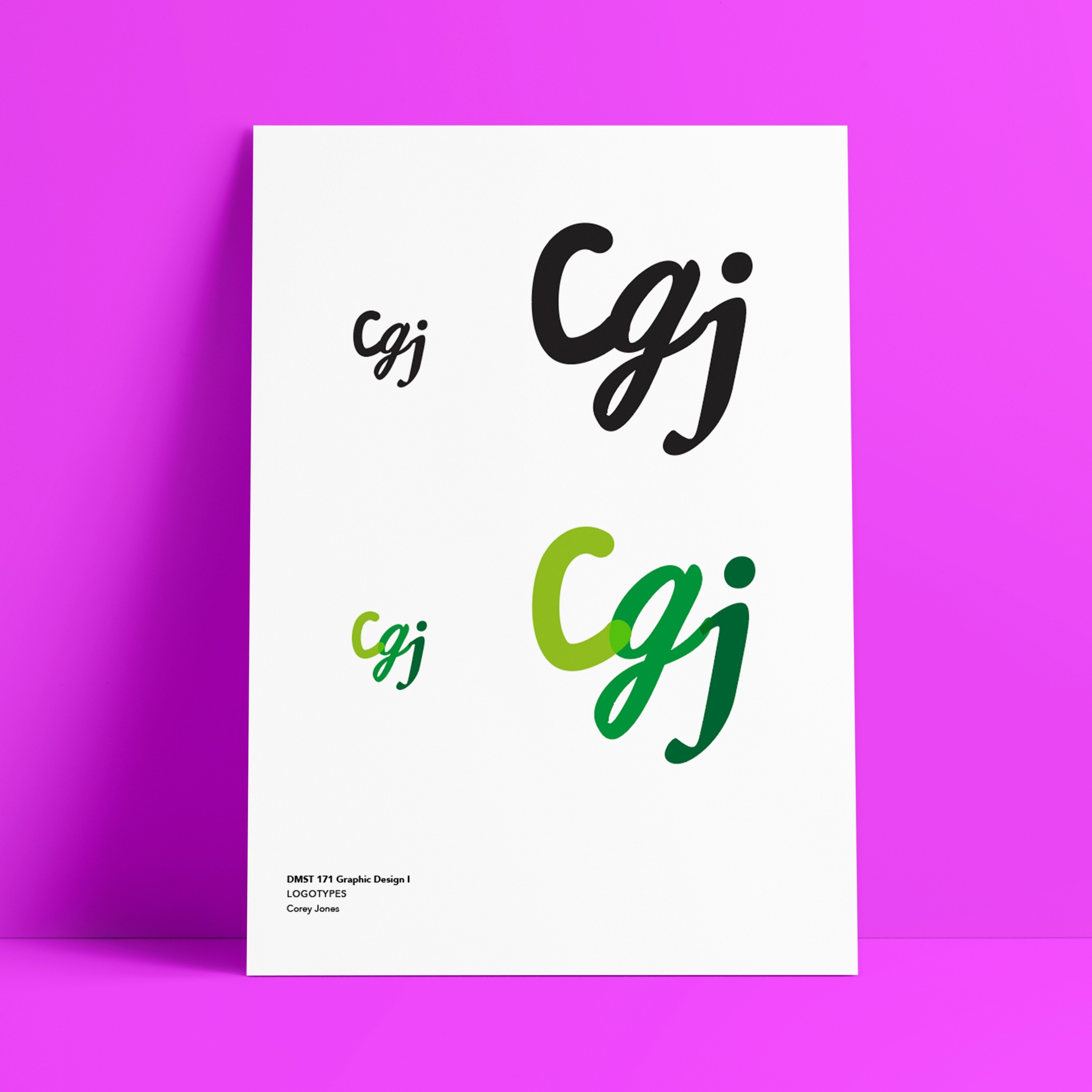 the initial project in this class involved using type as an identity, form and pattern. the ultimate aim was to create 30 logotypes using our initials, turn those into patterns and this would then be printed onto a box template for everyone to use.
